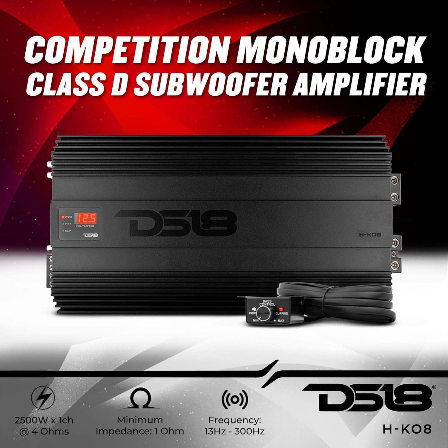 DS18 H-KO8 HOOLIGAN KO 1-Channel Class-D Monoblock Subwoofer Amplifier (Black) w/ Voltmeter & Clip Indicator 8000W RMS @ 1-Ohm (Made in Korea)
