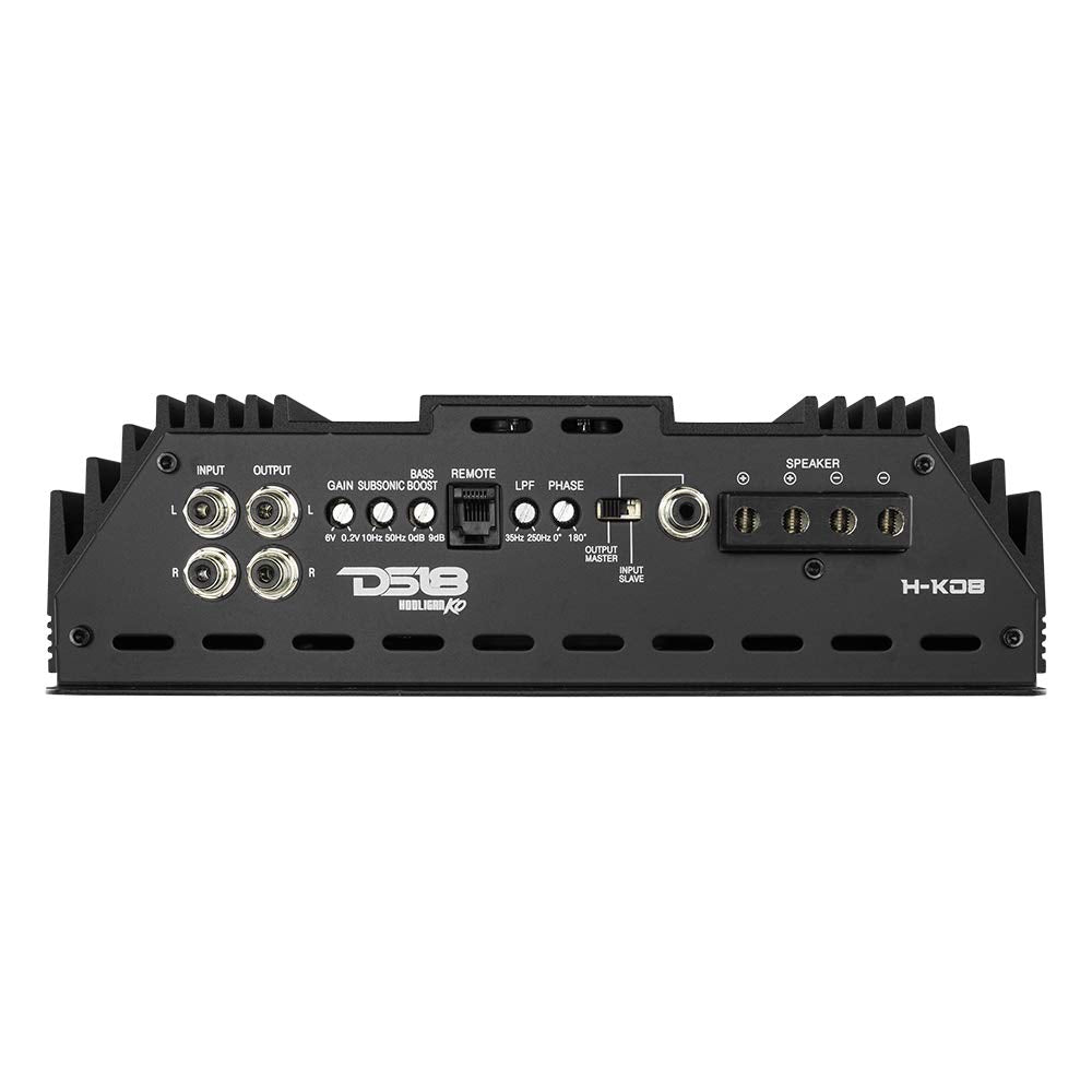 DS18 H-KO8 HOOLIGAN KO Class-D Monoblock Subwoofer Amplifier – Black, 8000W RMS @ 1Ω, 4800W @ 2Ω, 2500W @ 4Ω