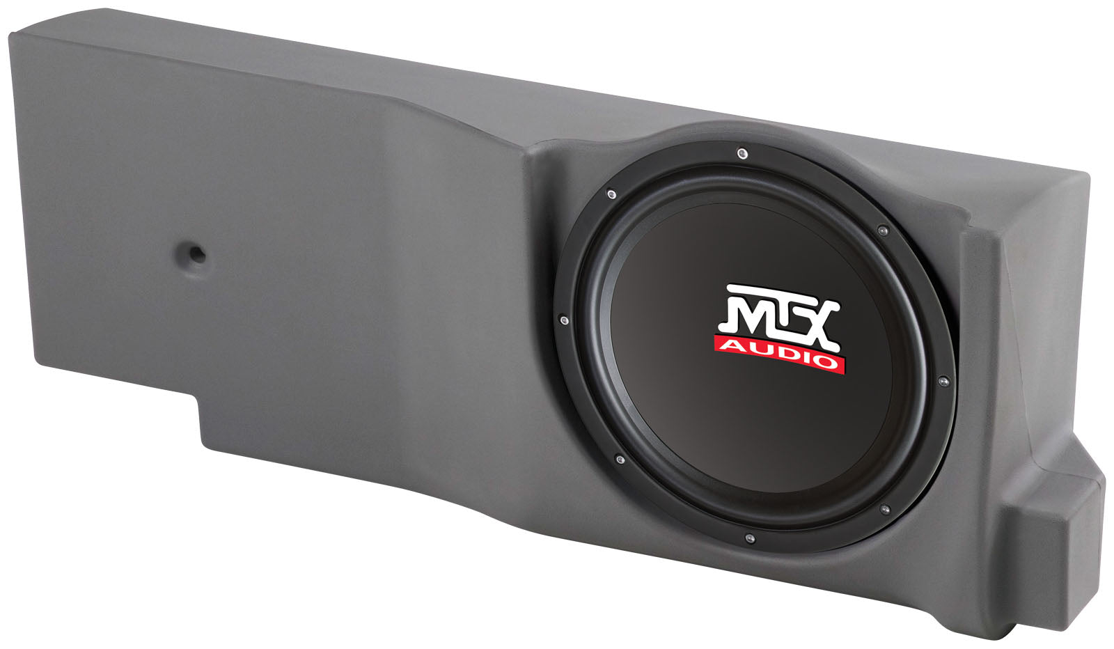 The MTX F150C04C12-TN is a custom-engineered, vehicle-specific subwoofer solution designed for 2004–2008 Ford F-150 owners who want high-output bass with a factory-integrated look. Finished in Charcoal to match common gray interior trims, this ThunderForm enclosure is rotationally molded from high-density polyethylene (HDPE), making it virtually indestructible and resonance-free. While most under-seat enclosures are limited to 10-inch drivers, this model is specifically designed to house a larger 12-inch Terminator series subwoofer, providing the extra surface area needed for deeper, more impactful bass. As a "Loaded" model, it is non-amplified, giving you the freedom to connect it to your choice of external mono or bridged amplification for a truly custom-tuned audio experience.