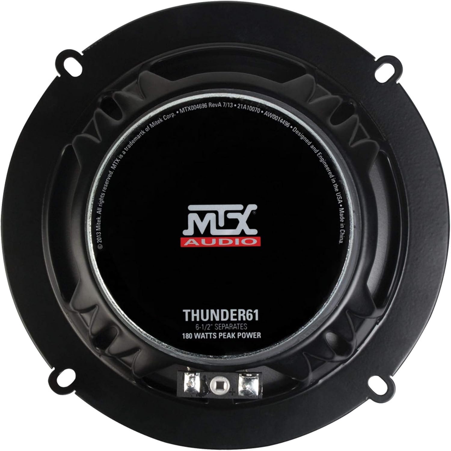 The MTX THUNDER61 is a high-performance 6.5-inch component speaker system engineered for listeners who want "Thunderous" bass response and crystal-clear imaging from their front stage. As a standout in the THUNDER series, these speakers are designed to play significantly lower than traditional 6.5" drivers, delivering a rich, full-range sound experience that shines even in vehicles without a dedicated subwoofer. The system features a durable polypropylene woofer with a concave cone design for superior off-axis response and a 25mm (1-3/16") silk soft dome tweeter that can swivel up to 15 degrees to dial in the perfect soundstage. With integrated 2-way crossovers and Spider Plateau Venting for thermal management, the THUNDER61 provides the durability and high-output performance needed to take any car audio installation to the next level.