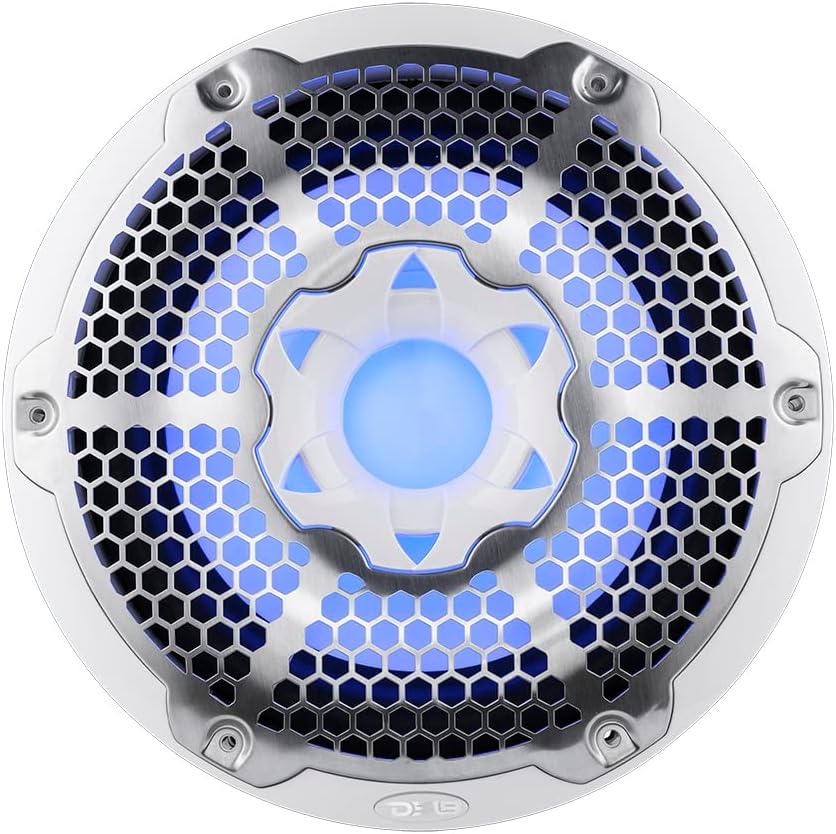 This white-finish 10″ marine-rated subwoofer delivers deep, powerful bass performance with integrated RGB LED lighting for boats, UTVs, ATVs, and outdoor audio systems. Rated IP65 for water and UV resistance, it is built to withstand harsh marine and outdoor environments while maintaining reliable low-frequency output. The single 4-ohm voice coil design makes it easy to integrate with marine and powersports amplifiers.