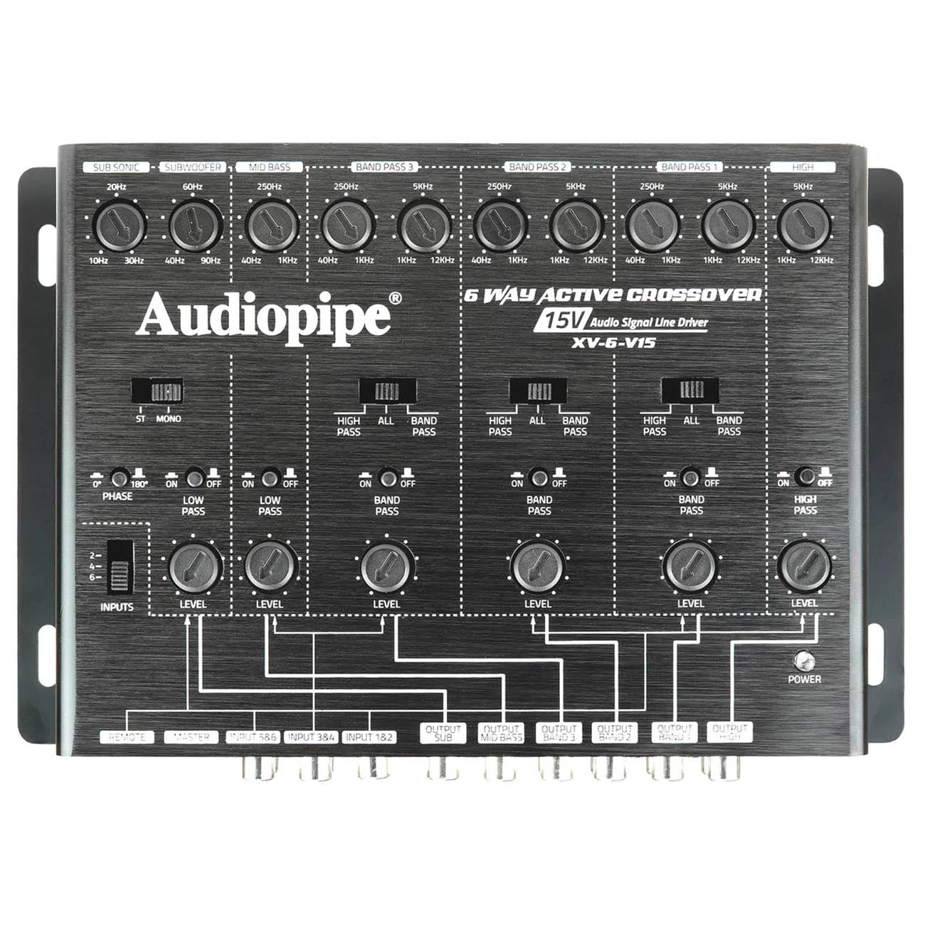 The Audiopipe XV-6-V15 is the ultimate command center for high-end car audio systems. This 6-way active electronic crossover features a massive 15-volt RMS line driver, ensuring an ultra-clean, high-voltage signal is delivered to your amplifiers for maximum headroom and zero floor noise. With 6 input channels and 12 output channels, it provides unparalleled control over your frequency distribution, allowing you to fine-tune Highs, Mids, Mid-bass, and Subwoofers with surgical precision. Whether you are building a competition-level SQ or SPL system, the XV-6-V15 provides the professional-grade signal processing required for elite performance.